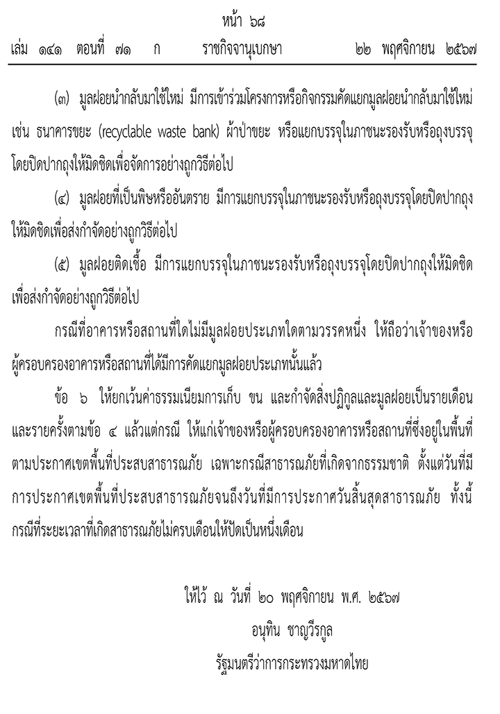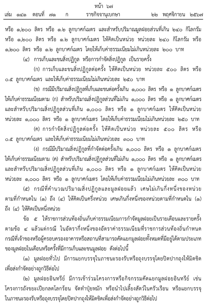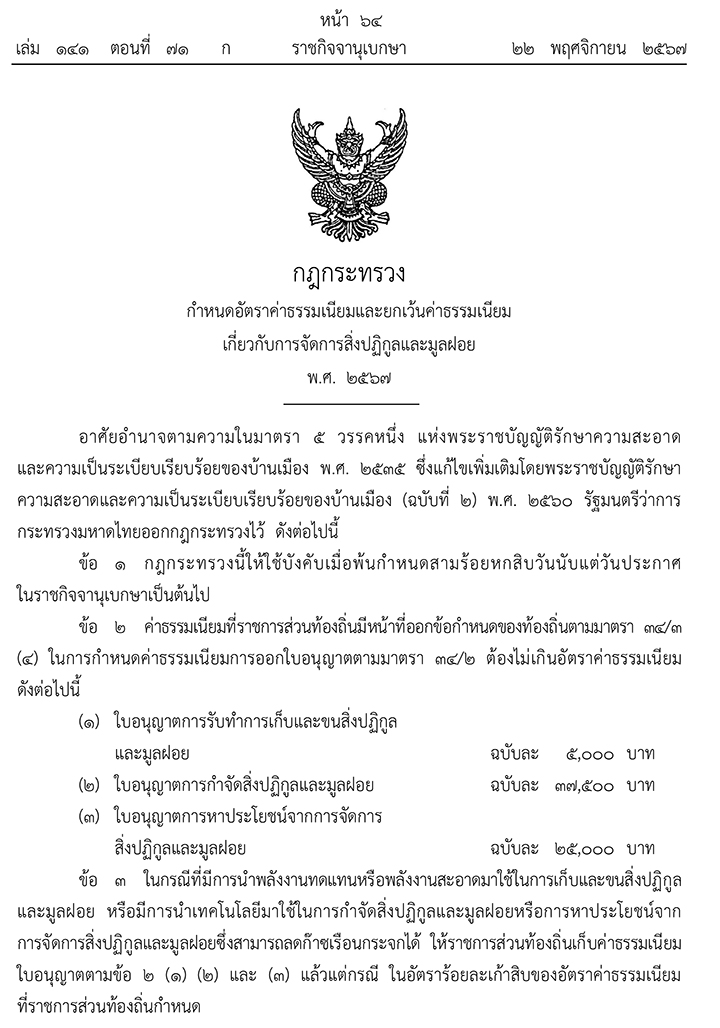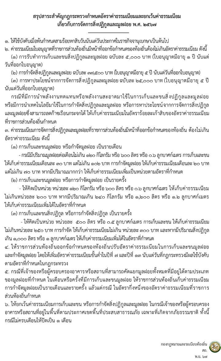กฎกระทรวงกำหนดอัตราค่าธรรมเนียมเเละยกเว้นค่าธรรมเนียมเกี่ยวกับการจัดการสิ่งปฏิกูลเเละมูลฝอย พ.ศ. 2567