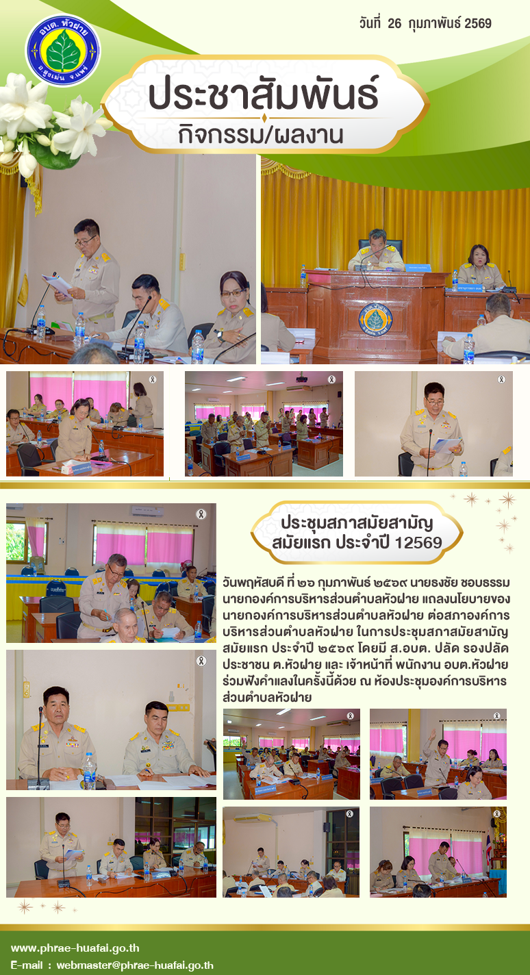 - ประชุมประชาคมหมู่บ้าน เพื่อจัดทำแผนชุมชนและแผนพัฒนาตำบล ประจำปีงบประมาณ 2568 ” ทั้ง 13 หมู่บ้านใน ต.หัวฝาย (27 พ.ย. 67)