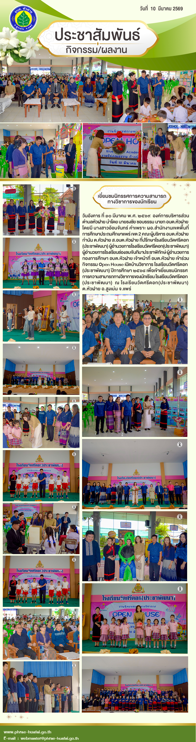 - เข้าร่วมกิจกรรม Open House เปิดบ้านวิชาการโรงเรียนวัดศรีดอก(ประชาพัฒนา) ปีการศึกษา 2566 (8 มี.ค. 67)