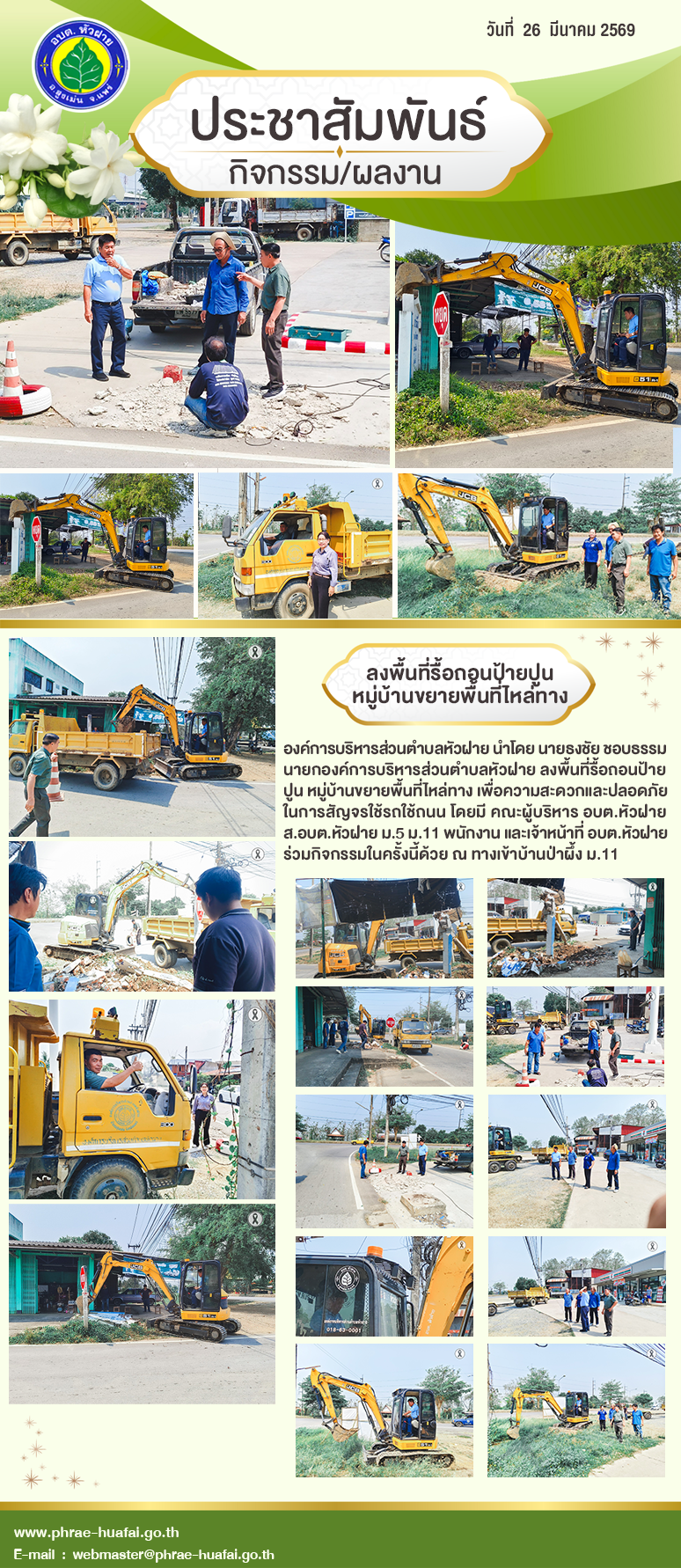 - นำรถขุดตักดิน ดำเนินการขุดลอกลำห้วยผักไห่ และตะกอนดินที่เกิดจากเหตุน้ำป่าพัดพาและทับถม พื้นที่ทางการเกษตรของประชาชนตำบลหัวฝาย (14 พ.ค. 63)