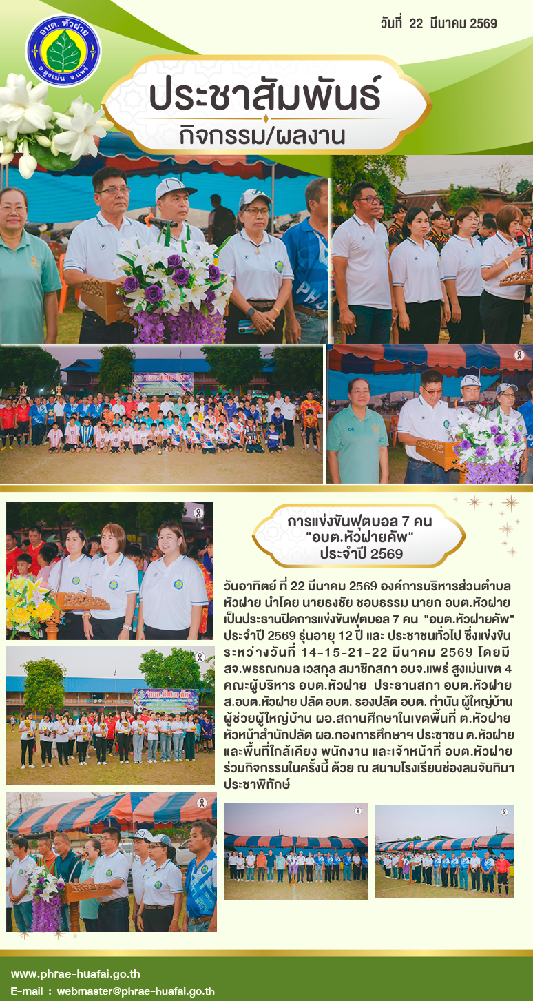 การแข่งขันฟุตบอล 7 คน “อบต.หัวฝายคัพ” ประจำปี 2569