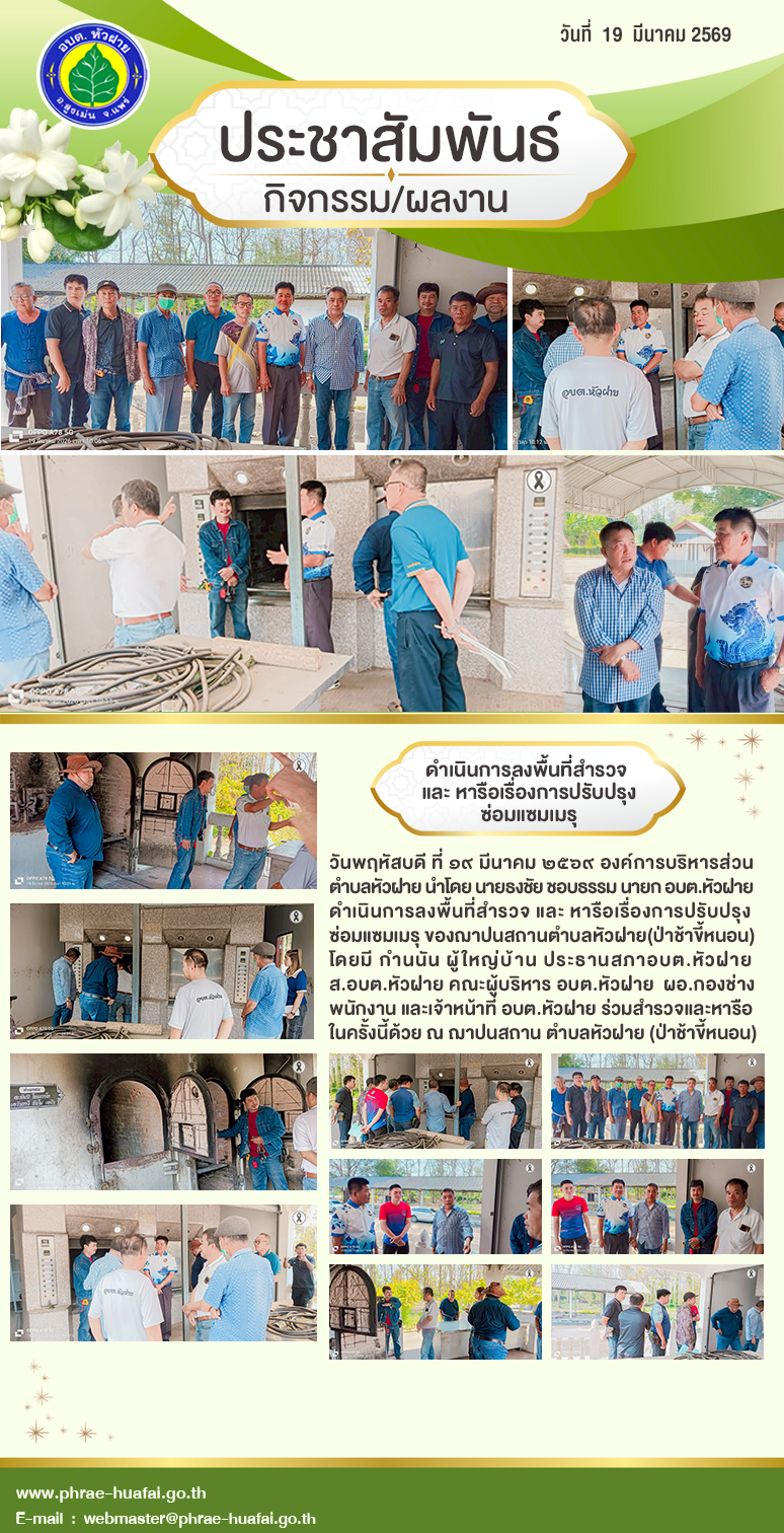 ดำเนินการลงพื้นที่สำรวจ และ หารือเรื่องการปรับปรุงซ่อมแซมเมรุของฌาปนสถานตำบลหัวฝาย(ป่าช้าขี้หนอน)