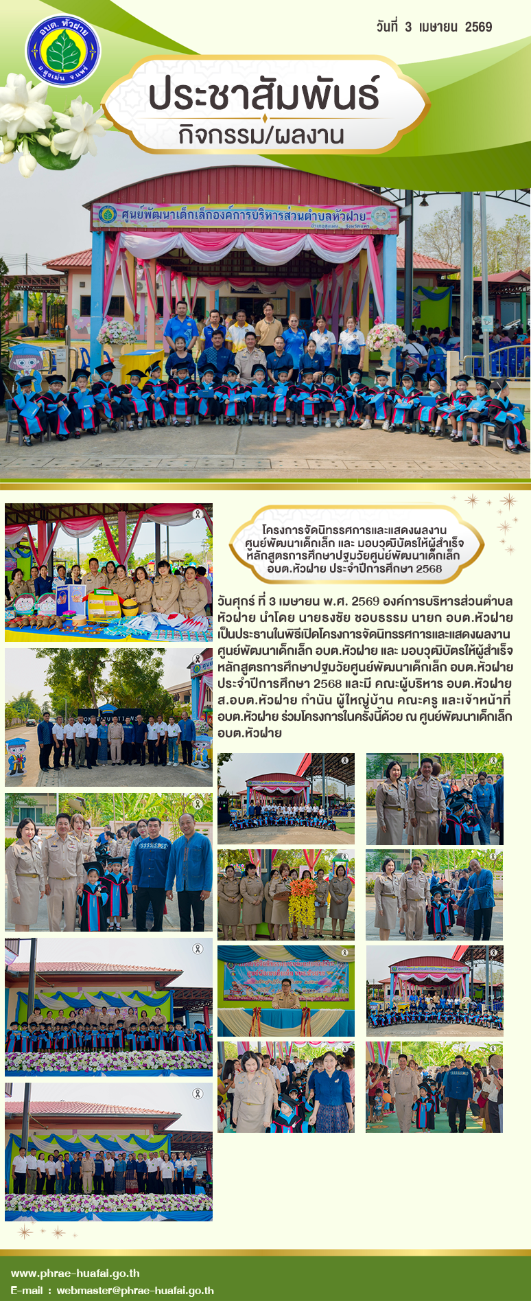 โครงการจัดนิทรรศการและแสดงผลงานศูนย์พัฒนาเด็กเล็ก อบต.หัวฝาย และ มอบวุฒิบัตรให้ผู้สำเร็จ หลักสูตรการศึกษาปฐมวัยศูนย์พัฒนาเด็กเล็ก อบต.หัวฝาย ประจำปีการศึกษา 2568