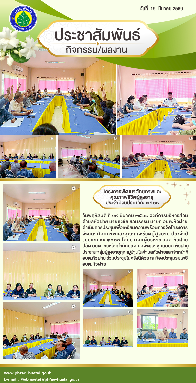 โครงการพัฒนาศักยภาพและคุณภาพชีวิตผู้สูงอายุ ประจำปีงบประมาณ ๒๕๖๙